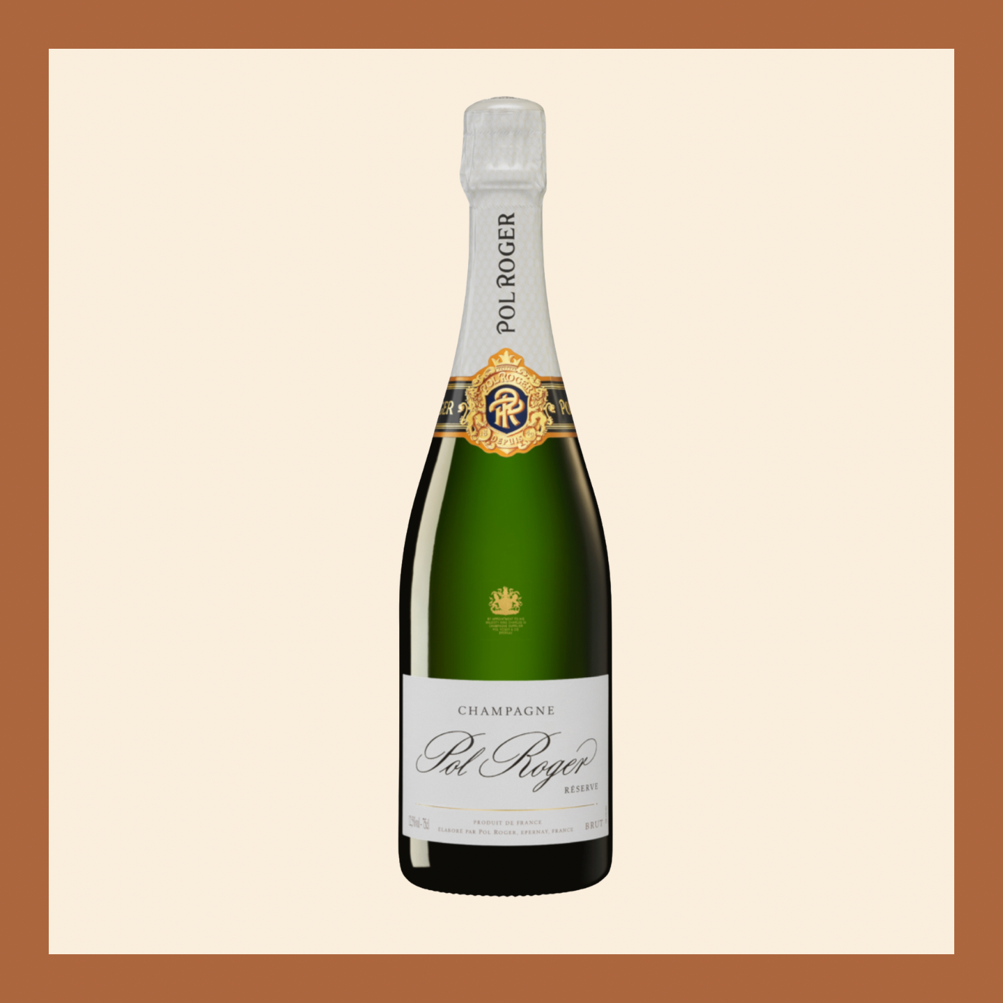 Pol Roger Brut Réserve diplays a beautiful golden straw coloured hue, as well as abundant and fine bubbles. With a powerful and attractive nose, it first delivers aromas of fruit (pear, mango ...) and then releases light flavours of honeysuckle and white jasmine, lingering on vanilla and brioche notes. Behind a frank and dynamic attack, the wine encompasses a nice harmony and a pleasant freshness, whilst preserving some structure. On the palate, flavours of cooked fruit (quince jelly, apricot jam) happily mingle with fragrances of beeswax and acacia honey. The long-lasting aromas, composed of both fruity (candied orange peel, tangerine...) and spicy notes (cardamom, anis) is outstanding.